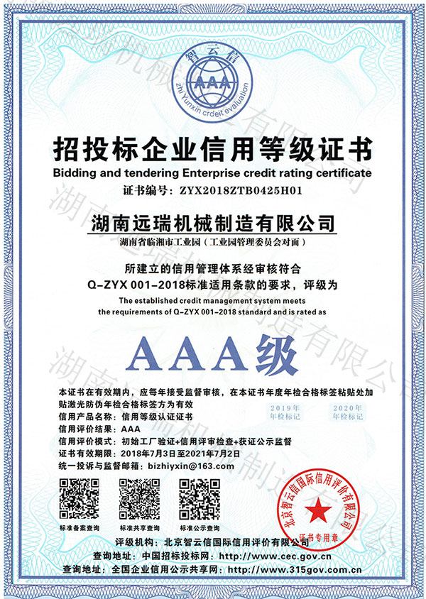 AAA级企业信用评级